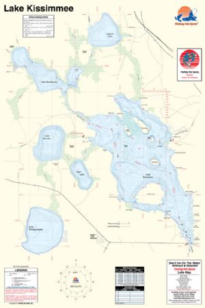 Lake Kissimmee, Florida Waterproof Map (Fishing Hot Spots)The 'anchor' of the Kissimmee chain of lakes, the most remote of Florida's 10 largest, highly acclaimed bass waters. This detailed map provides depth contours, structure, boat ramps and updated fishing information, with productive spots marked on the map. You'll also find a complete lat/long grid and dozens of GPS waypoints. These four-color maps are as easy-to-use as they are to read! Size - 24 x36